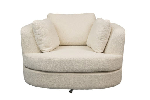 About this Swivel Chair Everyone LOVES this swivel chair upholstered in soft Boucle Snow fabric, plush cushioned seat & curve tub style prov...