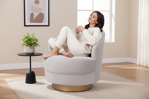 Stock | Leaves Sydney warehouse in 2-5 business days Key FeatureSwivels 360-degree This swivel accent chair upholstered in soft velvet fabric,...