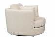 Everyone LOVES this swivel chair upholstered in soft Boucle Snow fabric, plush cushioned seat & curve tub style provides excellent support and relaxation featuring a subtle shell stitching and channelled details in Snow suit in a living room, bedroom, or your office.