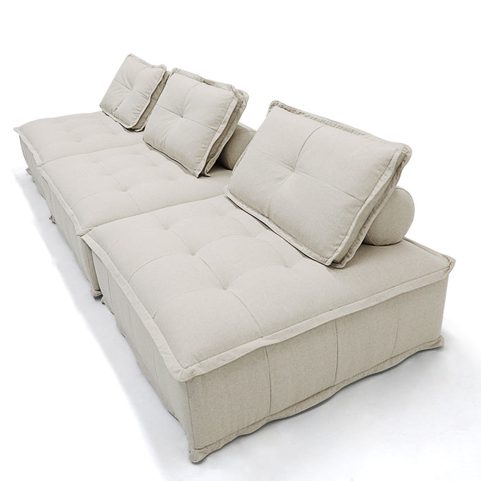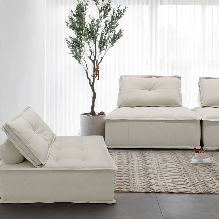 - The Dawson modular armless sofa is upholstered in a quality linen fabric blend bringing a neutral and natural aesthetic to your indoor spaces. Accessorise and personalise your armless sofa, using the grey beige tone to add your personality to your home.
