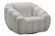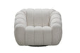 Everyone LOVES this swivel chair upholstered in soft velvet fabric, plush cushioned seat & curve tub style provides excellent support and relaxation featuring a subtle shell stitching and channelled details in Beige suit in a living room, bedroom, or your office.