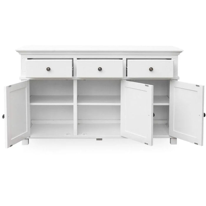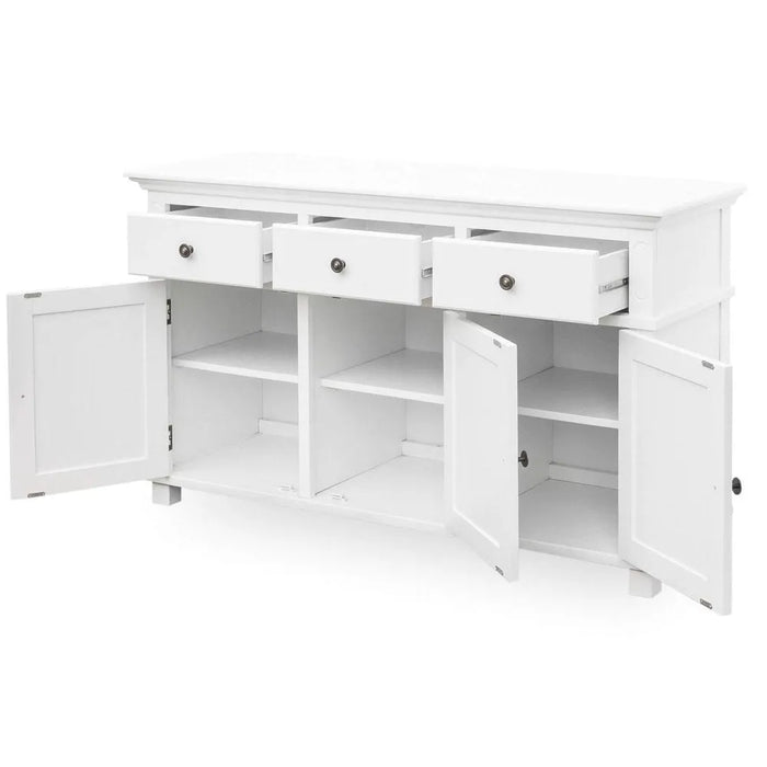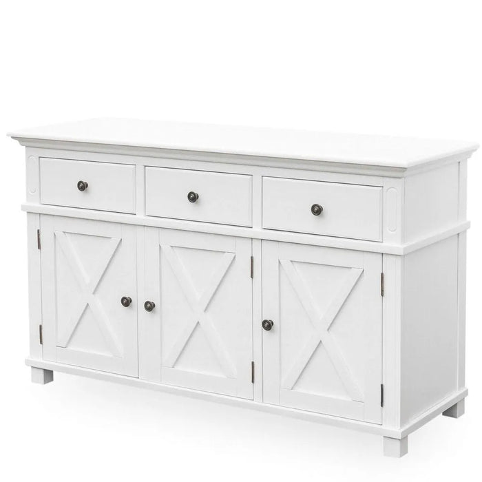 Experience the perfect blend of classic and contemporary style with our Sorrento 3 Door Hamptons Buffet. Crafted with intricate cross detailing and a sturdy structure, this buffet exudes sophistication while providing ample storage for your dining essentials. A must-have addition to any dining room or kitchen, ideal for hosting gatherings and storing cherished tableware.