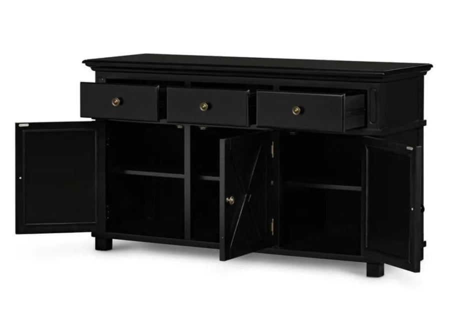 Black 1.45m Sorrento 3 Door Hamptons Buffet
