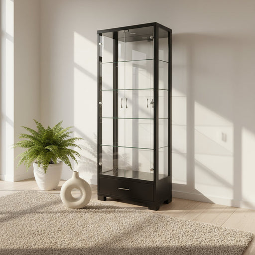 The Alicia corner display cabinet is engineered to optimize corner space, with glass shelves designed to maximize storage. Furthermore, LED lighti...