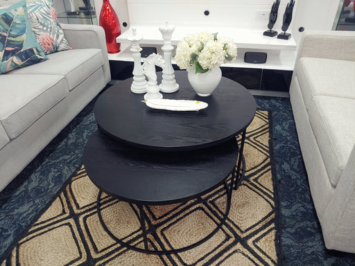Introducing our new 2 pce Coffee Table set! This set features solid black metal legs and tabletops made from black ash veneer. It's perfect for a v...
