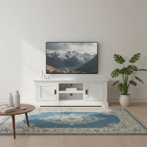 Specifications Colour: White Material: Solid Acacia Timber Material top: Solid acacia timber in light oak finish Two doors for maximum storag...