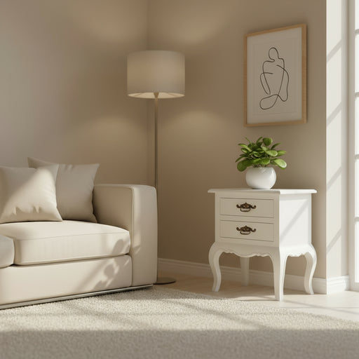 In Stock , Leaves NSW warehouse in 2-5 business days Product Details Colour: White Material: Mountain Ash 3-Drawers Antique Finish metal ha...