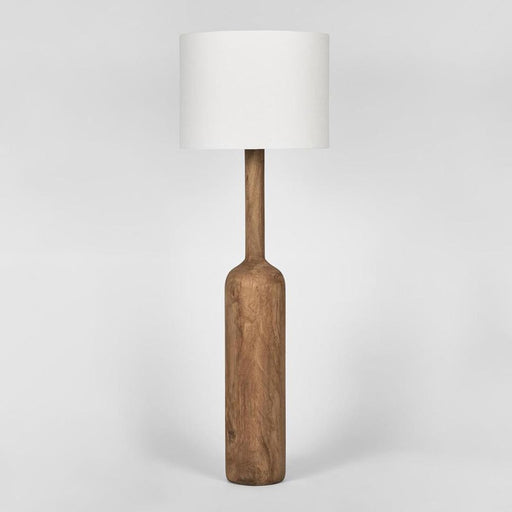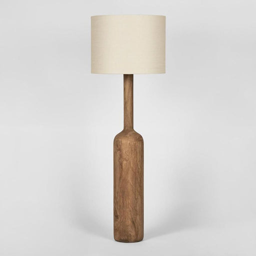 Flask Wood Floor Lamp Base Saddle with Natural Shade