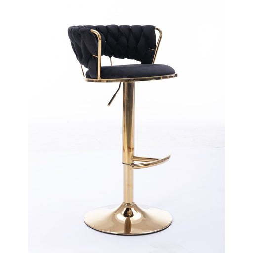 Rusafa Black Velvet & Gold Gas Lift Bar Stool