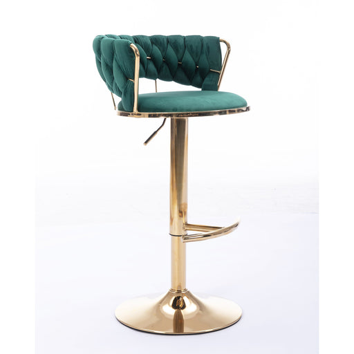 Rusafa Emerald Velvet & Gold Gas Lift Bar Stool