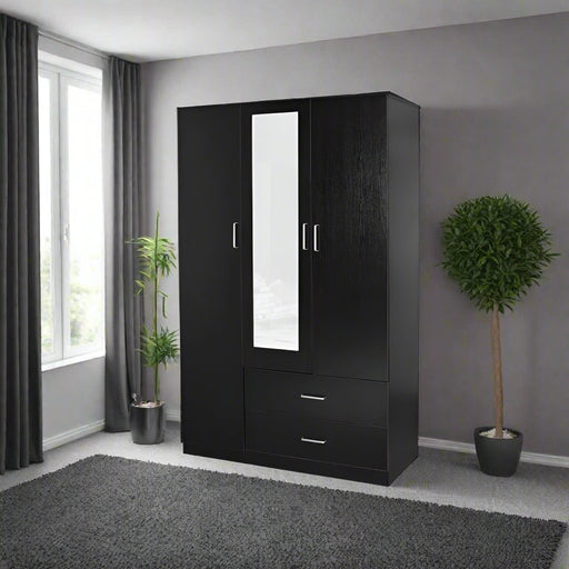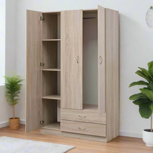 Keep bedroom neat and tidy With three doors, two of which are designed for hanging clothes, and shelving and extra drawers in the third, this robe ...