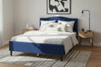 - Upholstered in Velvet fabric, Button tufted to the headboard panel, line with folded stitching.