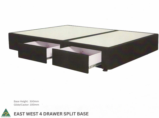 The East West 4 Drawers Base are designed to help distribute the weight of the individual sleeping position evenly across the surface of the mattre...