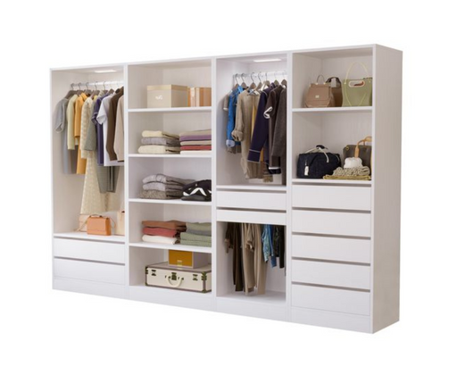 In stock Features Made of durable melamine boards in white Comes in set of four built-in combination wardrobe 5 x open shelves that will store lin...