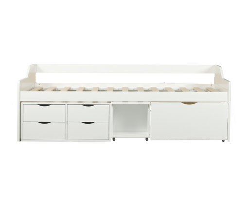 In stock Features Made in a high- quality melamine with tapered metal legs in a matching colour Strong slat system with central support legs for e...