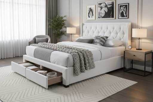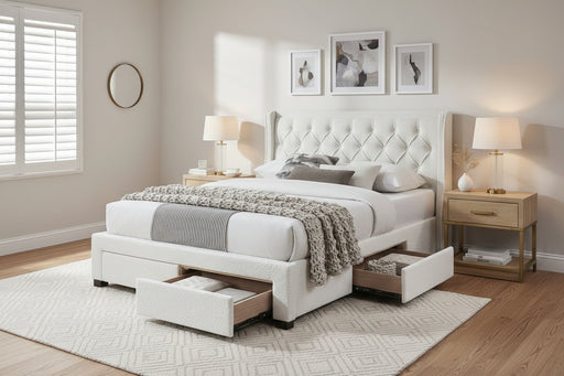 View full detailsJimmy Queen Bed with 4 Drawers in Boucle Fabric