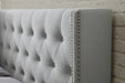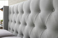 - Button tufted and padded bed head with silver studding for an eye-catching style