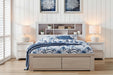 Transform your bedroom with this Brushed white wash contemporary King Bed frame that seamlessly blends style and functionality. The feature storage headboard and footboard offer clever storage solutions, while distinctive drawer configurations maximize space for bedding and essentials. Felt-lined top drawers protect delicate items, and full-extension runners ensure smooth, effortless access to every compartment and modern aesthetic without compromising on practicality. Perfect for those seeking both design and storage in one sophisticated piece.