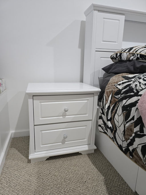 In stock Specifications Colour: White Material: MDF, Steel Finish: Gloss 2 Drawer with full extension runners Fully assembled Easy to clean with ...