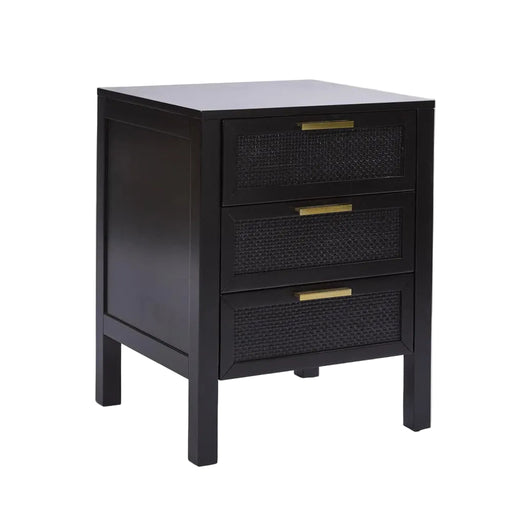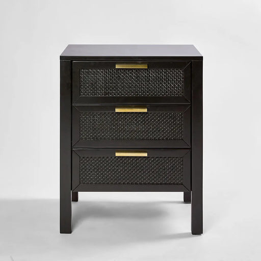 In stock Features Crafted with a solid wood frame, this bedside table features three pull-out drawers. Accented with a chic gold drawer pull and c...