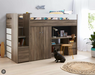 The Quantum King Single Bunk Bed Loft in Mocha Oak is a space-saving all-in-one unit featuring a bed, wardrobe, and desk. Built with a solid engineered wood frame and metal support ladder for extra support. The wardrobe provides good storage, and the desk adds a practical workspace. 5 Drawer tallboy in optional to include in your purchase Comes with a 12 months warranty and complies with safety standards.