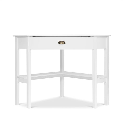 Key Features Equipped with a drawer and two shelves, offering ample storage space Corner table takes up less space while taking full advantage of...