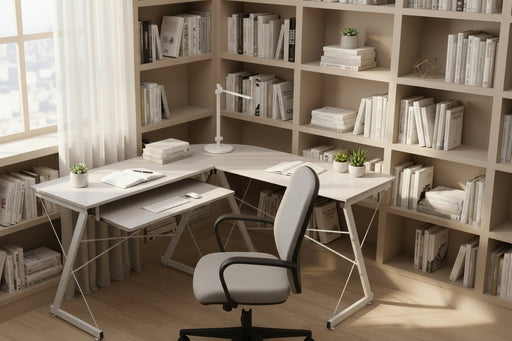 Description The Roka Corner Desk White combines smart space utilization with practical functionality. Its solid pine wood and MDF construction pro...