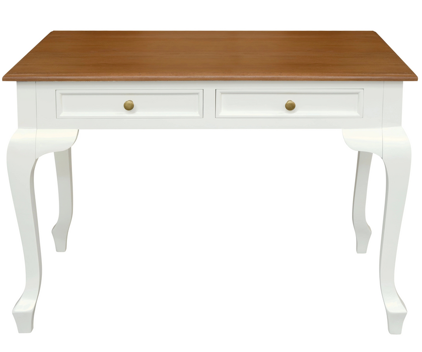 Queen Anne 2 Drawer Timber Desk White Caramel