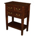 Compact in size yet full of character, the Tasmania 3-Drawer Sofa Table is a smart and stylish solution for smaller spaces in need of practical storage and timeless charm. Crafted from solid mahogany timber and finished in a smooth satin sheen, this piece measures 65 × 35 × 83 cm and weighs 16 kg, making it ideal for entryways, narrow hallways, or beside a lounge chair. Its classic straight-leg design and warm wood tones are enhanced by three soft-glide drawers with solid brass handles and a handy lower shelf for open storage or display. With its clean lines and versatile style, it suits both modern and traditional interiors alike. Available in Mahogany, Chocolate, Light Pecan, White, and Black, the Tasmania 3-Drawer Sofa Table brings durability, elegance, and everyday function to any corner of the home.