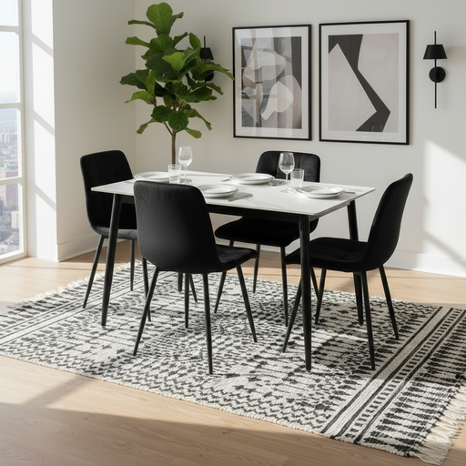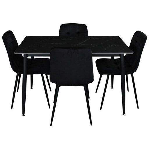 View full details5 Pce Florida Dining Table & Black Velvet Chair Set