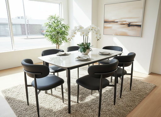 View full details7 Pce Florida Dining Table & Black PU Leather Chair Set