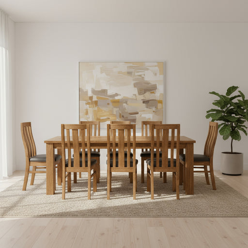 View full detailsAmsterdam 1.8m Solid Mahogany Wood Dining Table Set - Light Pecan