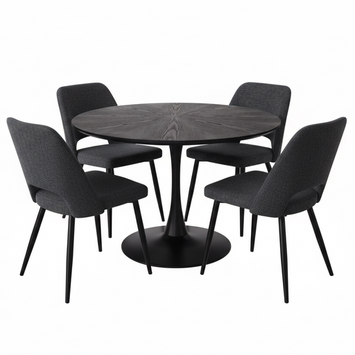 Starla 5-Piece Dining Set with Charcoal Fabric Dining Chairs, 100cm
