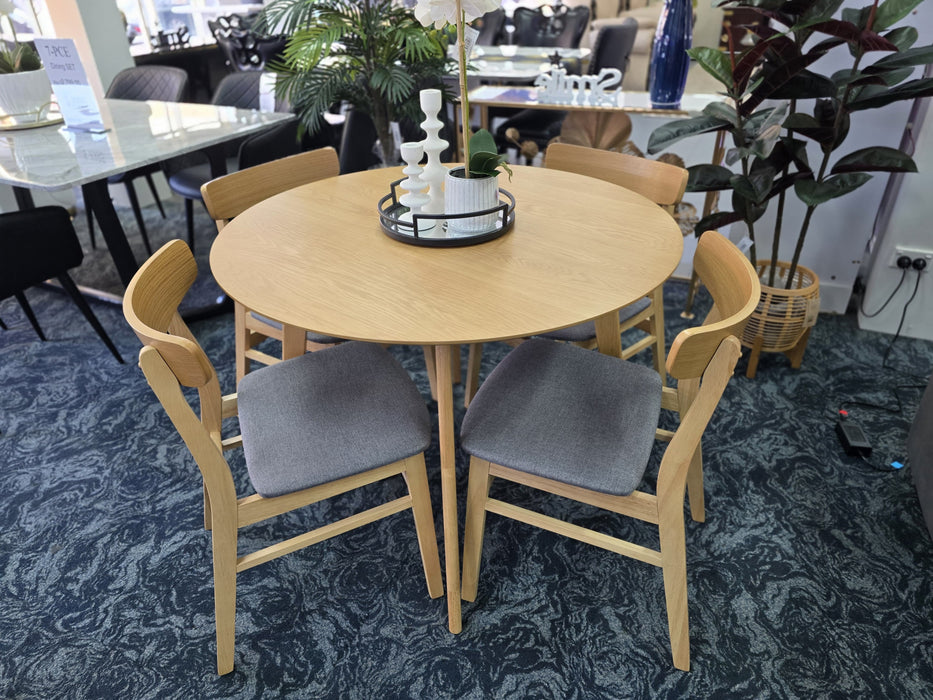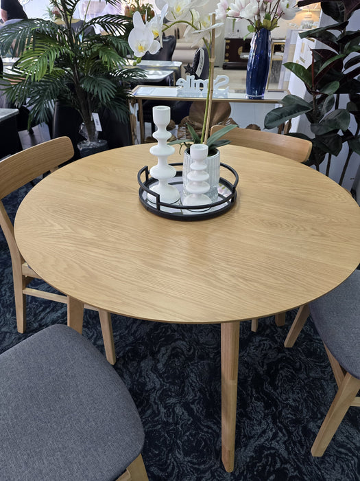 - Made of Oak wood round table and veneer frame invites warmth & texture