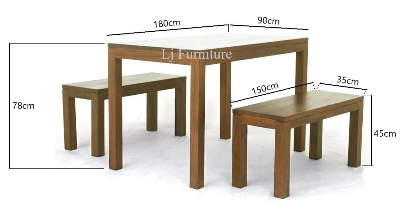 - Bench: 150cm (L) x 35cm (D) x 45cm (H)
