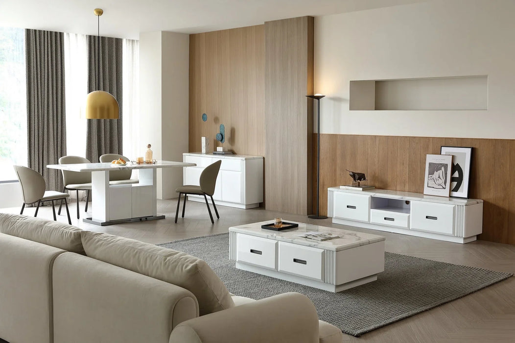 7 Piece Madrid Marble Dining Table with 6 Chairs