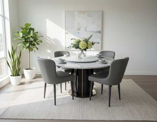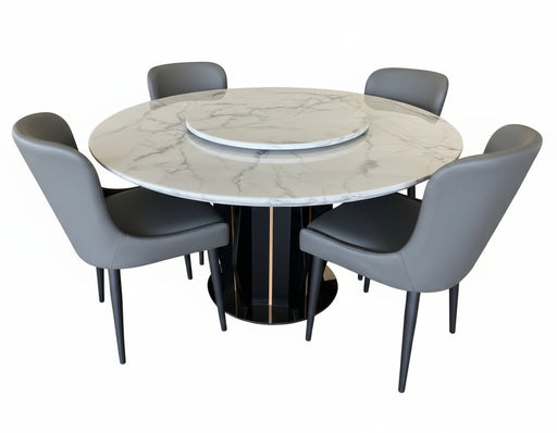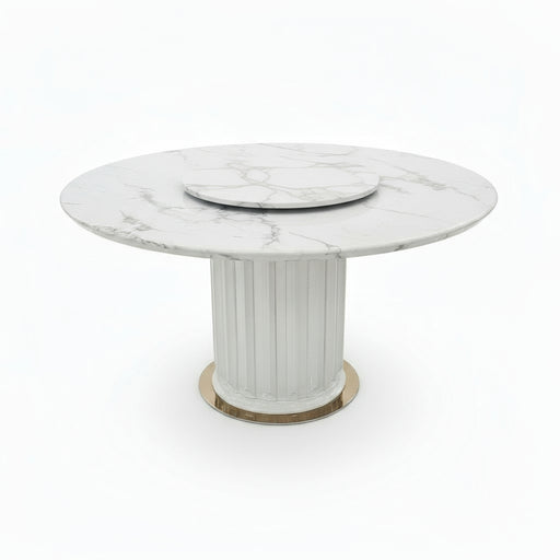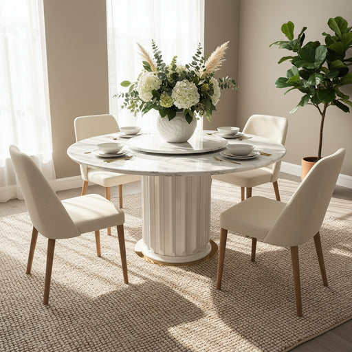 Specifications Seating Capacity : 6 Person Style: Contemporary Colour: White Shape: Round Material top: Marble with foil Base: Gold Lazy Susan i...