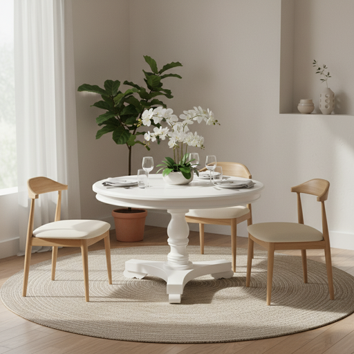 The Tarona Dining Table blends traditional charm with modern finishes with its white and solid timber construction adorned with decorative detailin...