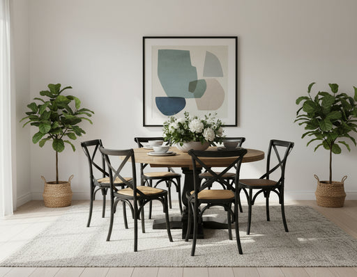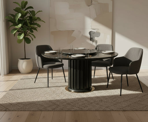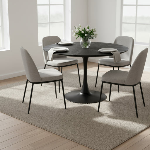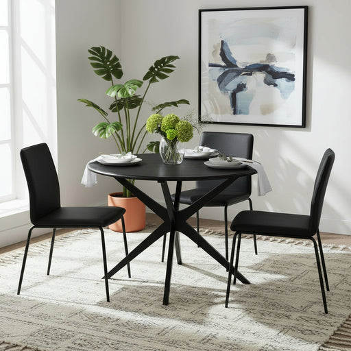 Specifications Style: Contemporary Shape: Round Colour: Black Fits four chairs comfortably Material frame: Acacia solid wood Brushed black finish ...