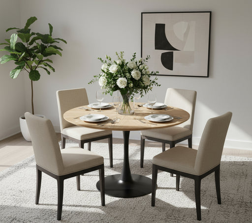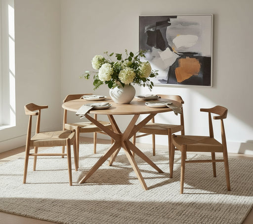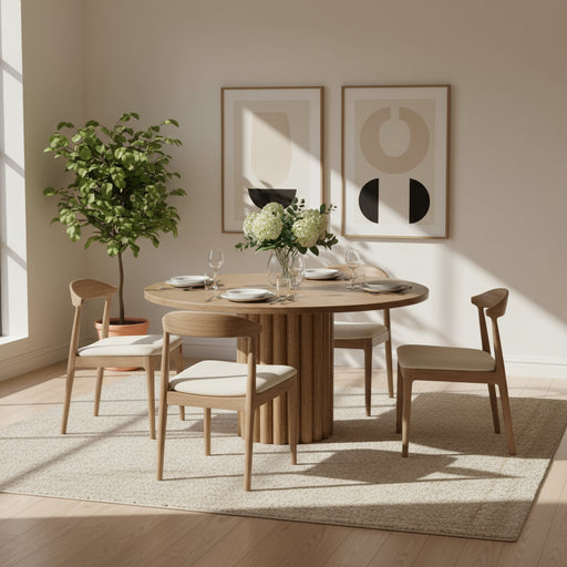 Elevate everyday dining with our playful Sass Oak Dining Table in Natural. Its unique round shape, supported by strong round legs forming the base,...