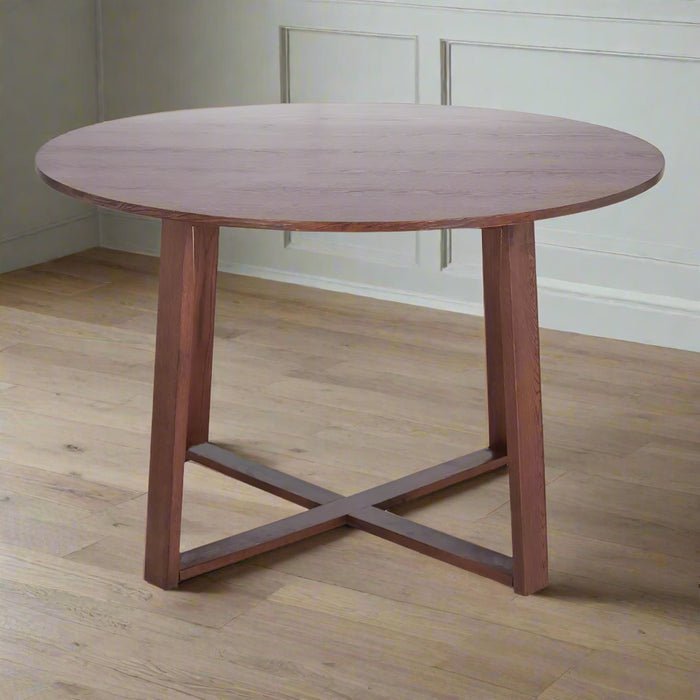 Olwen 1.2m Oak Wood Round Dining Table - Walnut