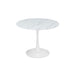 - Contemporary style, sleek design tulip round table top with pedestal metal base.