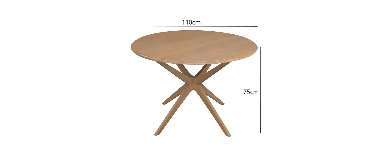 The round table top has intricately designed base with interlocking legs, providing excellent support and an artistic element to the piece. This table is ideal for those who appreciate clean lines and a natural aesthetic in their living or dining areas.