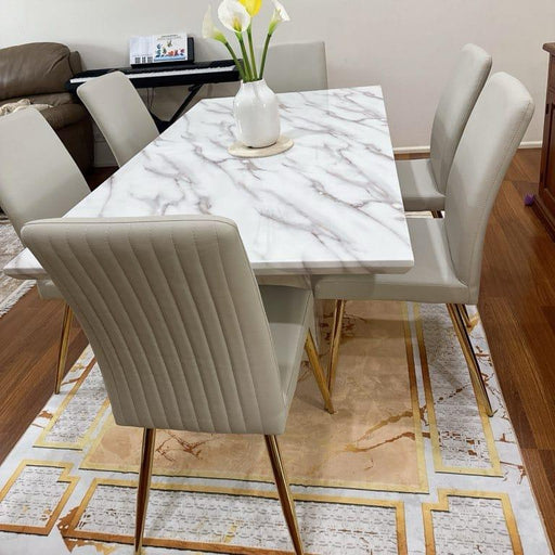 Vanesa 1.8m Dining Table - Marble Top with Black Base
