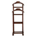 Designed to hold two sets of garments, it features twin rails shaped for coats, shirts or jackets, while the base provides a stable place for trousers or accessories.