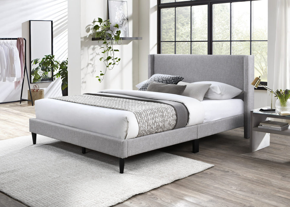 Minimalist design with clean lines makes it a perfect fit for modern bedrooms .Sleek silver fabric upholstery complements any contemporary bedroom décor. Padded headboard provides a cosy backrest for reading or relaxing. Upholstered in high-quality fabric that’s both comfortable and long-lasting.