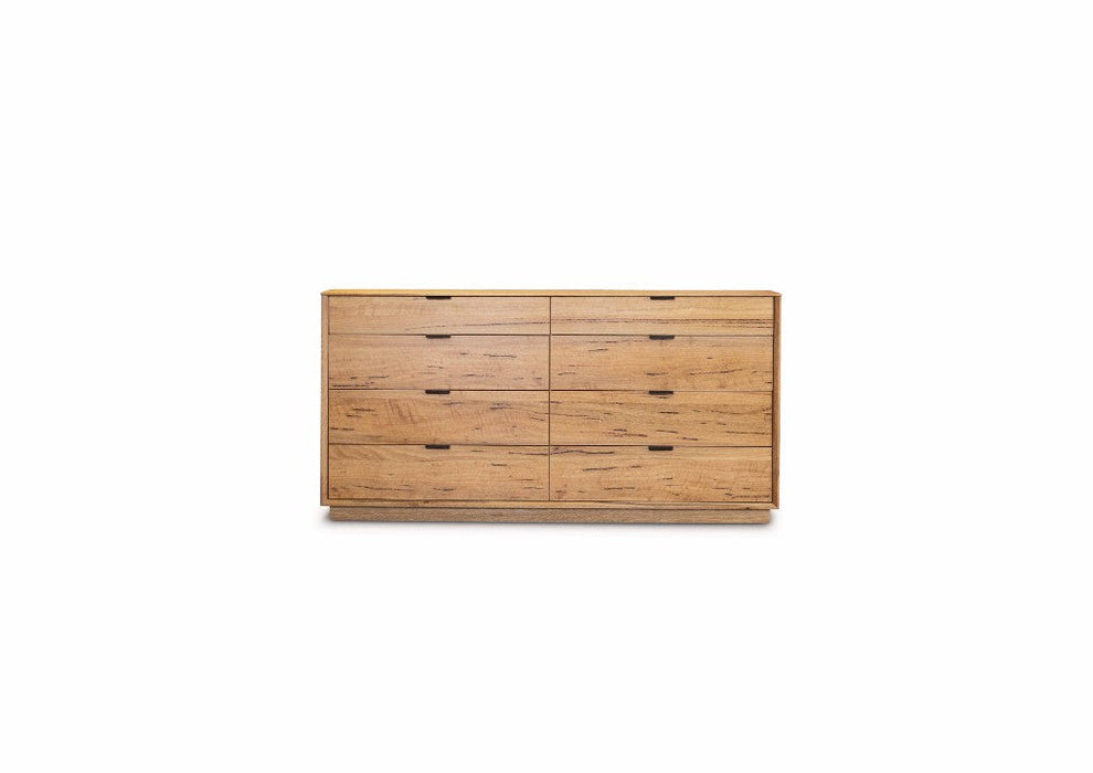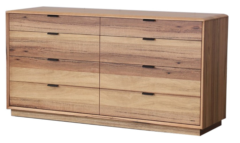 Enhance your bedroom with the Galway 6 Drawer Dresser - showcasing its eye-catching natural grains and practical organizer compartments that bring an organic and functional touch to your space.