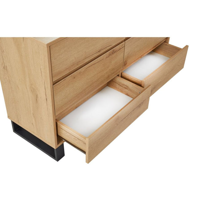 The Coogee 6 drawer dresser create an inviting space with a contemporary design. Constructed from particleboard with spacious drawers with metal runners and handles.