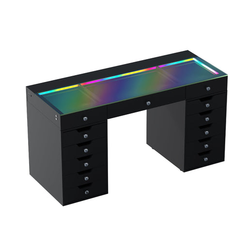 In stock Features Crafted from durable MDF frame with 13 x storage drawers Build-in RGB LED light strip Adjustable light colour and brightness T...