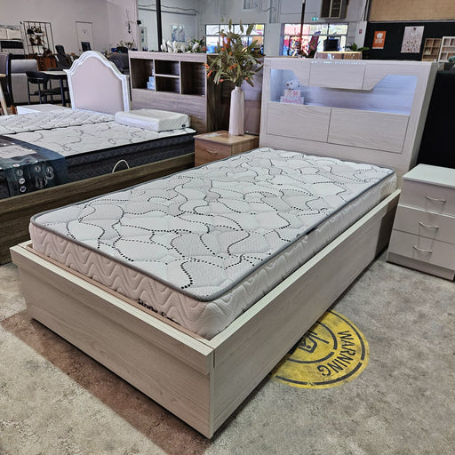 Product Specifications: Colour: Gloss White Available Sizes: Single, King Single Material: Timber + Veneer Side Gas Lift Storage LED light with Op...